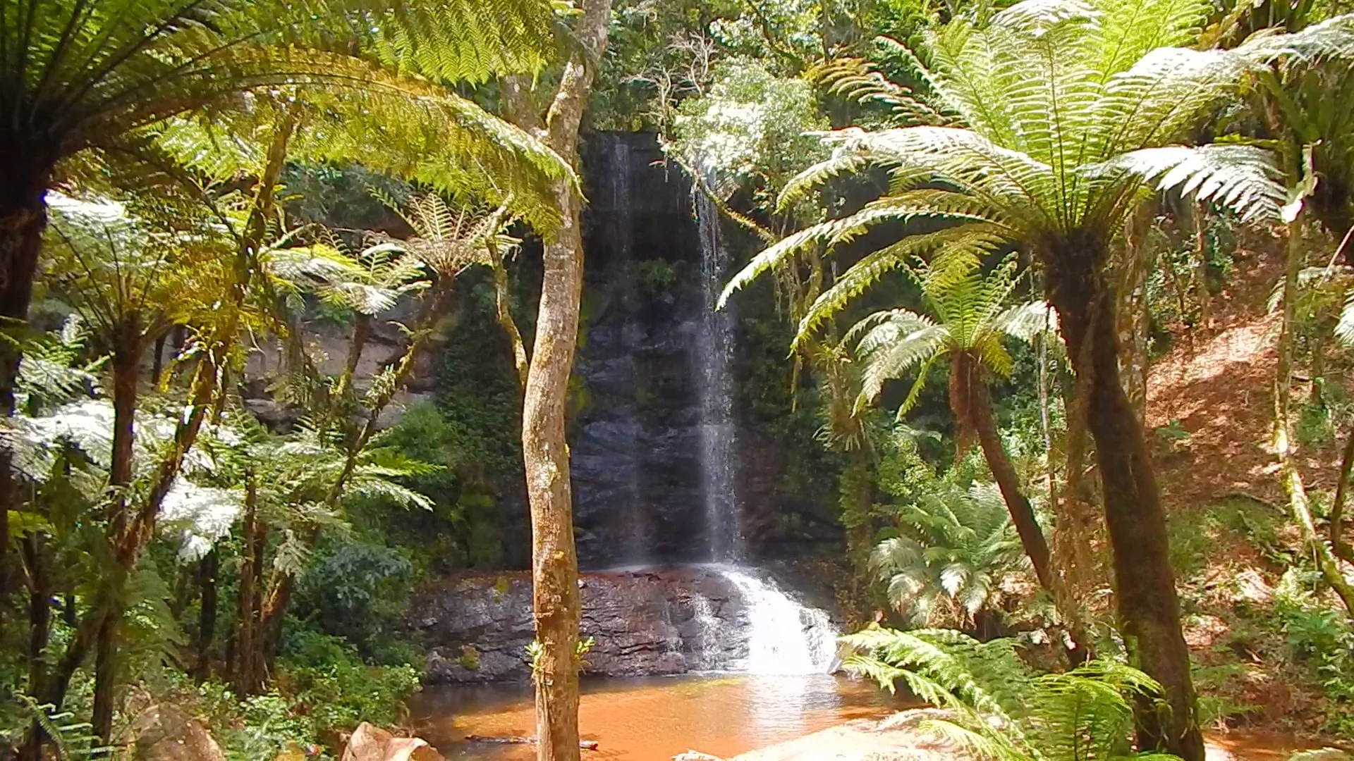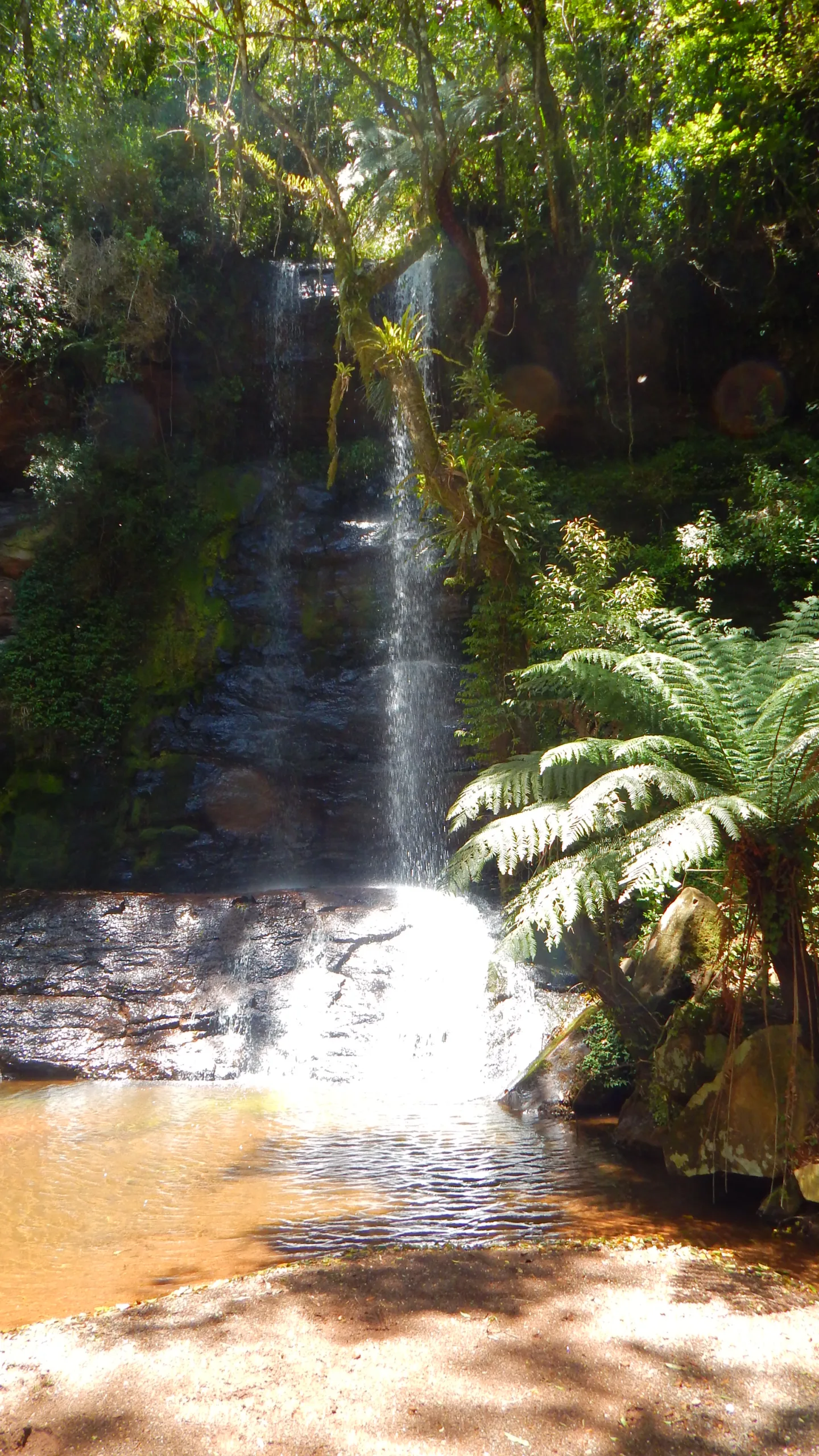 A cascata é linda, ótima para se refrescar na queda d’água e forma pequenas piscinas naturais mais abaixo, por onde passa.